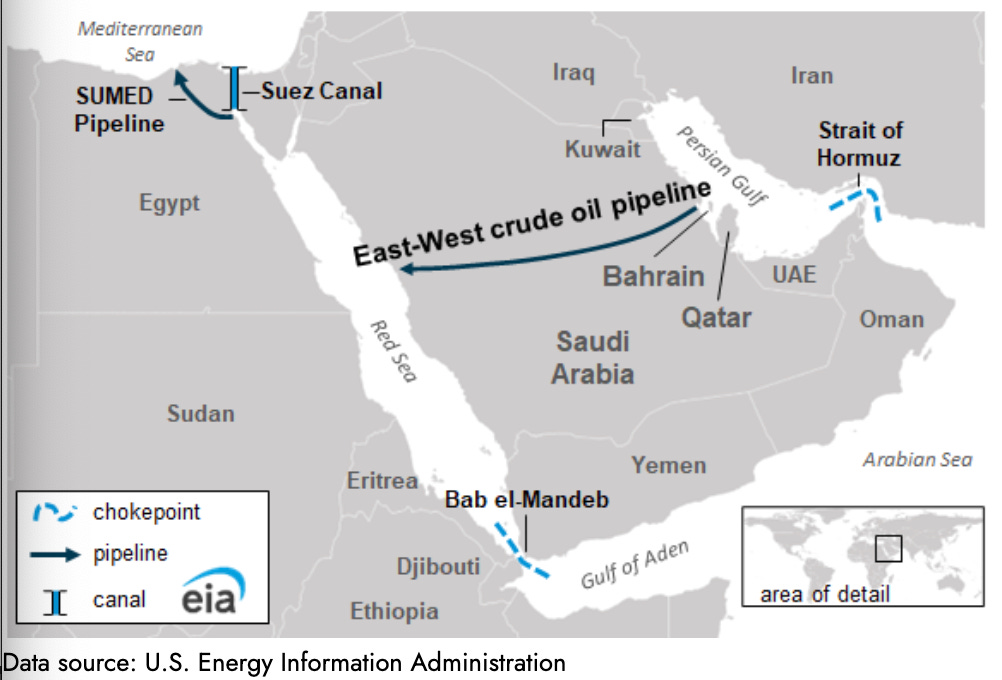 Map of Saudi Arabia’s East-West pipeline built to bypass Strait of Hormuz.