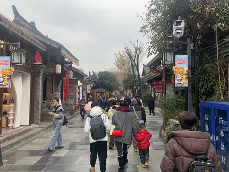 Across the city, there are a number of different places where you can find historic alleyways offering up street food and traditional souvenirs (e.g., Chinese tea, stuffed pandas, etc.) The best place to do this is along the pedestrian-only KuanZhai alley. Kuan (wide) Zhai (narrow) alley is a great place to hang out and grab a meal, coffee, or simply observe people.