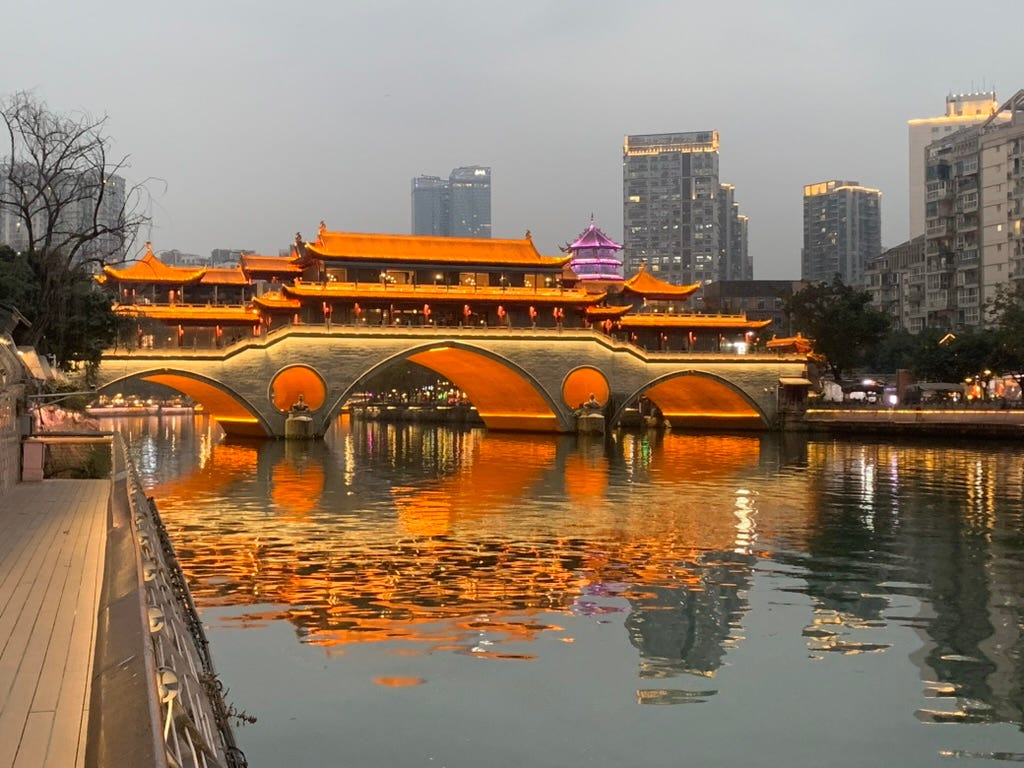 When it is getting dark, be sure to make your way to Anshun Bridge to check out the lights. The current version is a reconstructed version completed in 2003, after previous versions (dating back to the 18th century) were destroyed by floods.
