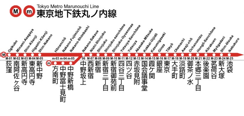 And assuming you get on the right train, Ikebukuro is the terminus for the Marunouchi line (station at the far right in the graphic below), so just ride it to the end!